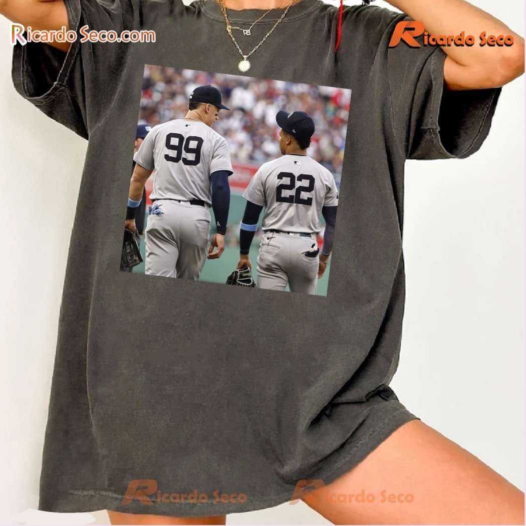 Keywords: Aaron Judge, Juan Soto, New York Yankees, Baseball, MLB, #99, #22, Classic Men’s T-Shirt, Ricardo Seco, Sports Apparel, Fan Gear, Unique Design, Premium Cotton, High-Quality Printing