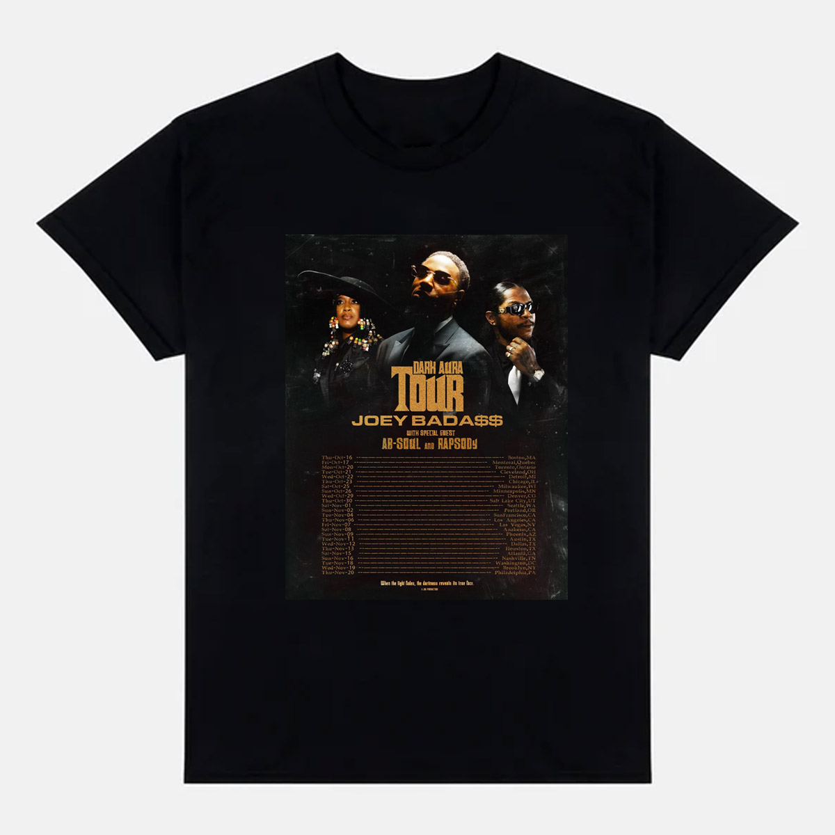 Joey Bada$$ Dark Aura Tour T-Shirt | ft. Ab-Soul & Rapsody Concert Merch