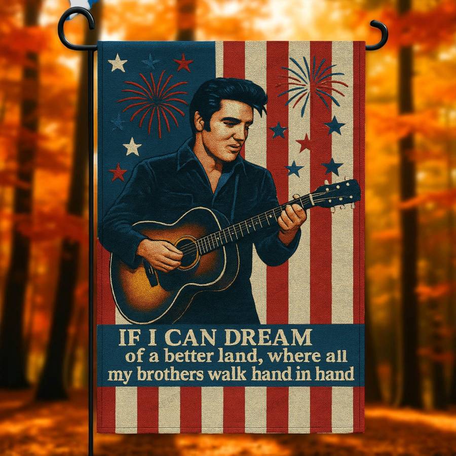 Immerse yourself in the timeless message of hope and unity with our Elvis Presley “If I Can Dream Of A Better Land Where All My Brothers Walk Hand In Hand” Flag. This flag isn’t just a decorative piece; it’s a statement, a visual representation of Elvis’s iconic song and its enduring message of brotherhood and peace. At Ricardo Seco, we’re proud to offer this unique flag, perfect for Elvis fans, dreamers, and anyone who believes in a brighter future.